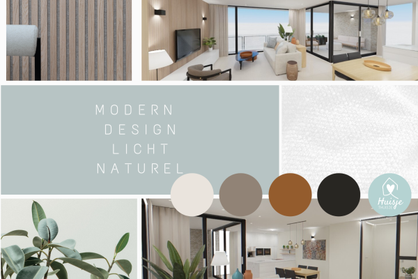 Deze klant contacteerde mij bij de aanvang van de bouwwerken van haar nieuwbouwappartement in Sterrebeek. Ik hielp haar met de keuzes van alle materialen, kleuren en verlichting voor de leefruimte en keuken. De klant had enkele design-stuks uit haar huidige woning, die ze graag wilde meenemen naar het nieuwe appartement. Uiteindelijk werd het een mix van design en orgnisch moderne stuks.